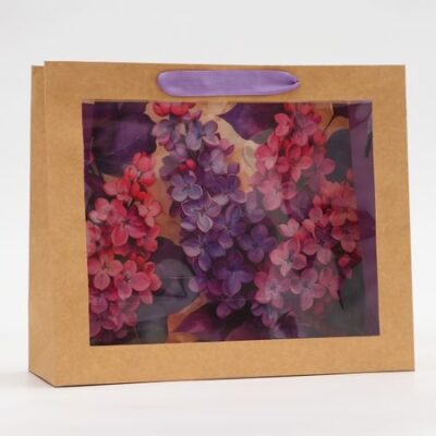 Пакет подарочный с PVC окном, «Сирень», 31×11×26 см. <strong> Пакет с ПВХ-окном и рисунком на внутренней стороне — идеальный выбор для упаковки и демонстрации товаров.</strong> Размер пакета составляет 31 см в высоту, 11 см в ширину и 26 см в глубину, что позволяет разместить внутри разнообразные продукты или предметы. Окно из ПВХ обеспечивает прозрачность и позволяет видеть содержимое пакета, не открывая его. Внутренняя стенка пакета украшена ярким рисунком, который добавляет эстетическую привлекательность и привлекает внимание потенциальных покупателей. Этот пакет подходит для упаковки различных товаров, включая кондитерские изделия, фрукты, овощи, игрушки и многое другое. Он также может использоваться для упаковки подарков, сувениров и других предметов, требующих особого оформления. Благодаря своим размерам и удобству использования, этот пакет станет незаменимым помощником в вашем бизнесе и поможет увеличить продажи.