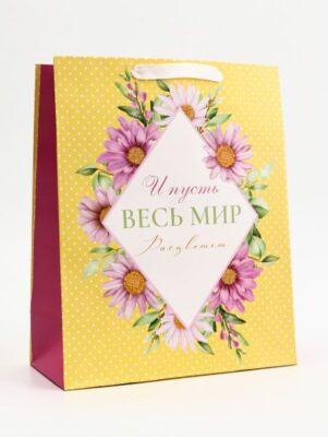 Пакет подарочный вертикальный «И пусть весь мир расцветет», 26×32×12 см. <strong> Пакет подарочный ламинированный, плотность 190 г/м²</strong> Этот пакет представляет собой идеальную комбинацию стиля, качества и функциональности. Ламинирование придает поверхности гладкость и блеск, благодаря чему упаковка выглядит особенно эффектно и презентабельно. Плотность 190 г/м² обеспечивает исключительную прочность и надежность, что позволяет использовать пакет для самых разнообразных подарков, включая тяжелые предметы. Ламинированная поверхность отлично сохраняет краски, поэтому изображение остается ярким и четким долгое время. Кроме того, такая упаковка устойчива к воздействию влаги и грязи, что делает ее идеальной для использования в любых условиях. Пакет легко складывается и занимает минимум места, что очень удобно при хранении. Благодаря прочному материалу, он выдерживает многократное использование, что делает его экономичным вариантом для частых дарителей. Этот пакет станет отличным выбором для тех, кто ценит качество, стиль и внимание к деталям. Независимо от повода, будь то день рождения, свадьба, Новый год или любой другой праздник, ваш подарок в таком пакете обязательно произведет впечатление и оставит приятные воспоминания.