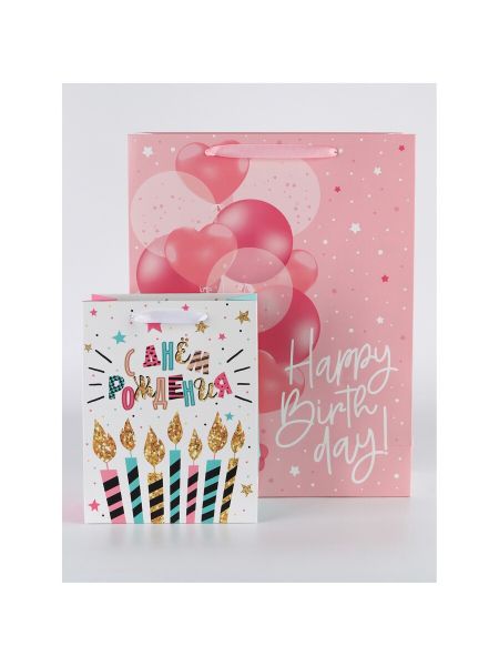 Пакеты подарочные ламинированные, двухсторонние, упаковка, «С Днем Рождения» 18 х 23 х 10 см ‒ 40 х 31 х 11.5 см. Размеры пакетов: 40 × 31 × 11.5 см 18 × 23 × 10 см