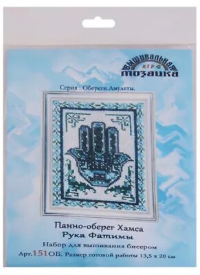 Панно-оберег Хамса Рука Фатимы Набор для вышивания бисером (151ОБ) (13,5х20 см) (ОберАмул) (упаковка)