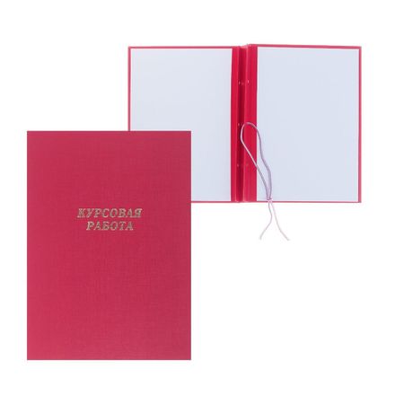 Папка «Курсовая работа» А4, бумвинил, гребешки/сутаж, (без бумаги) красная 10КР01. Папка изготовлена из прочного картона, толщиной <b> 2 мм</b> с покрытием из качественного бумвинила. Золотое тиснение фольгой на лицевой стороне папки. Рассчитана на <b> 280-300</b> листов плотностью <b> 80 г/кв.м.</b> Корешок <b> 30 мм,</b> Внутри расположена вставка с тремя отверстиями и шнуром для сшивания листов.