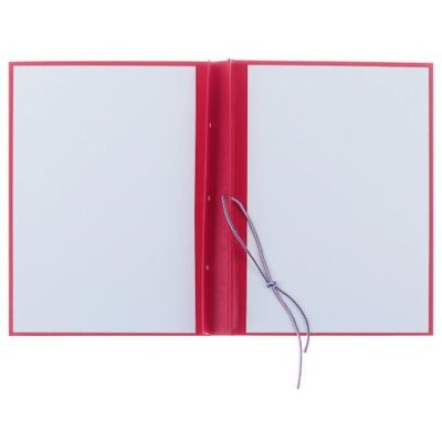 Папка "Выпускная квалификационная работа" бумвинил, гребешки/сутаж, без бумаги, цвет красный (вместимость до 150 листов). Папка изготовлена из прочного картона, толщиной <b> 2 мм</b> с покрытием из качественного бумвинила. Золотое тиснение фольгой на лицевой стороне папки. Расчитана на <b> 150</b> листов плотностью <b> 80г/кв.м.</b> Корешок <b> 30мм,</b> Внутри расположена вставка с тремя отверстиями и шнуром для сшивания листов"