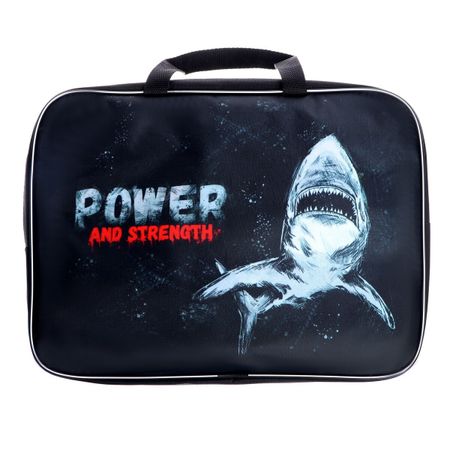 Папка с ручками текстильная «Акула» А4, 350×270×70 мм. Папка текстильная на молнии с ручками, формат A4+. Размер 270 х 70 х 350 мм. Материал: износо-морозостойкий водоотталкивающий 100% полиэстер. Предназначена для транспортировки учебных принадлежностей, документов и различных аксессуаров. Имеет одно большое отделение с расширением и карманом внутри, застежка на молнии с мягким ходом. Для комфортной переноски ручки папки выполнены из прочной стропы