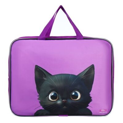 Папка с ручками текстильная А4, 350 х 270 х 70 мм, Calligrata "Котик черный". Папка текстильная на молнии с ручками, формат A4+. Размер 270 х 70 х 350 мм. Материал: износо-морозостойкий водоотталкивающий 100% полиэстер. Предназначена для транспортировки учебных принадлежностей, документов и различных аксессуаров. Имеет одно большое отделение с расширением и карманом внутри, застежка на молнии с мягким ходом. Для комфортной переноски ручки папки выполнены из прочной стропы