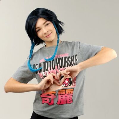 Парик «Аниме» цвет голубой с косами.