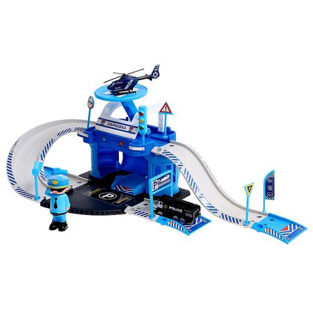 Парковка «Полицейский участок», с металлическими машинкой и вертолетом. С игрушечной парковкой «Автоград» ребенок сможет разместить коллекцию транспорта в одном месте! <b> Особенности</b> <ul> <li> В комплект входят фрагменты треков с дорожной разметкой и установленными на них дорожными знаками. Поэтому маленький гонщик сможет построить трассу и играть с машинками на парковке.</li> <li> На верхнем уровне организованна вертолетная площадка.</li> <li> В комплекте вертолет и машинка, разметка и дорожные знаки.</li> </ul> <b> Увлекательно и полезно</b> Игры с парковкой дают детям стимул к развитию творческих способностей, фантазии и пространственного мышления.