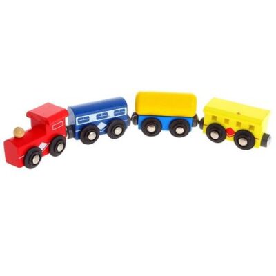Паровоз магнитный деревянный, 2 вагона и цистерна