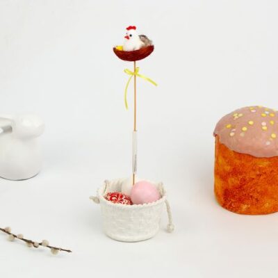 Главная » Товары для детей Пасхальный декор на палочке Просмотров 4 Пасхальный декор на палочке «Курочка в гнезде», 7×7×28 см, в гнездышке. No brand
