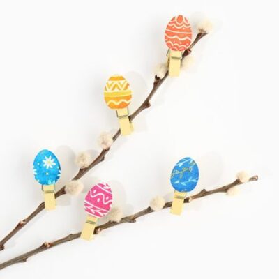 Пасхальный декор, набор прищепок для украшения вербы «Со Светлой Пасхой!», 10×12 см. Пасхальный декор, набор прищепок для украшения вербы «Со Светлой Пасхой!», 10×12 см — это декоративный элемент, который станет незаменимым помощником в подготовке к празднику Пасхи. Изготовленные из дерева, прищепки отличаются своей прочностью и долговечностью. — Разноцветный дизайн декора на прищепках делает их яркими и привлекательными, что позволяет создать праздничное настроение и атмосферу. — В комплекте идет 10 прищепок, что позволяет украсить большое количество верб. — Вес набора составляет всего 20 грамм, что делает его легким и удобным для использования. — Набор прищепок для украшения вербы «ХВ» станет отличным выбором для тех, кто хочет создать праздничное настроение и украсить свой дом к Пасхе.