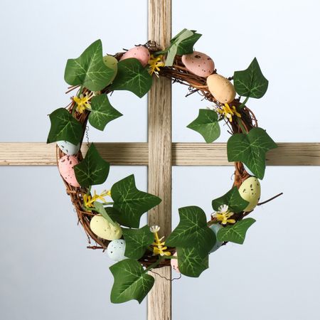 Главная » Товары для детей Пасхальный венок на дверь Просмотров 4 Пасхальный венок на дверь «Яички с листочками», настенный декор, d=18 см. No brand