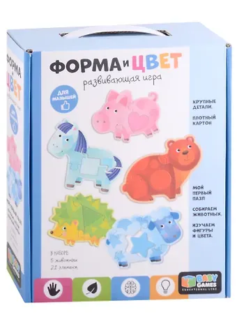 Линейка Baby Games создана для раннего развития ребенка. С помощью игры и забавных персонажей ваш малыш легко и весело научится различать цвета и геометрические фигуры. Набор развивает слуховое и зрительное внимание, речь и мелкую моторику. В наборе 5 животных: лошадь, свинка, овечка, ёжик, медведь.