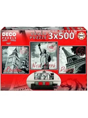 Главная » Товары для детей Пазл Educa 3*500 эл. 40*40,5см. Большие города Просмотров 6 развивает мелкую моторику рук, память, внимание посредством собирания яркой и красочной интерьерной картинки, состоящей из мелких деталей.