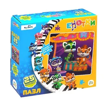 Пазл 25 элементов, основанный на любимых сюжетах мультфильма «Енотки», понравится любому ребенку, а сборка яркой картинки принесет радость не только малышам, но и их родителям. Соберите всю коллекцию новых пазлов!