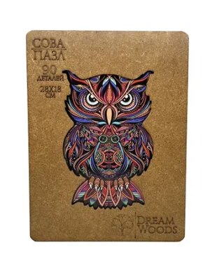 Фигурный пазл Dream Woods — пазл из дерева, который состоит из фигурных деталей в виде животных, птиц и растений и других фигур. Сова II — нестандартный пазл: он состоит из элементов не единой, а разнообразной формы. Подбор деталей в виде мини-фигурок требует от владельца головоломки внимания, хорошей зрительной памяти, творческого мышления.