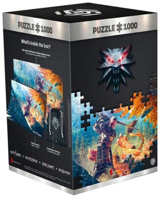 Пазл по легендарной игре и сериалу The Witcher (Ведьмак) из 1000 элементов. Посмотрите, как Геральт из Ривии сражается с чудовищем из Белого сада. Знаменитая дуэль с грифоном — одна из первых важных задач, с которыми сталкивается Ведьмак в третьей части игры. Вы знаете результат этой захватывающей схватки В каждом комплекте вы найдёте: подарочная, коллекционная коробка с двойной крышкой, которая идеально подходит для вашей домашней коллекции, пазл 1000 элементов (68*48 см в собранном виде), плакат 68*48 см, хлопковый мешочек с принтом для хранения элементов.Особенности:Премиальное качество материалов Уникальная графика от разработчиков игр Высокое качество изготовления на основе новейших полиграфических технологий Идеальная стыковка элементов Насыщенные цвета Материал устойчив к заломам Более матовая поверхность способствует уменьшению количества бликов.Новая серия высококачественных пазлов от компании Good Loot, с помощью которых фанаты игр и пазлов смогут переместиться в свои любимые игровые миры, собирая их буквально по кусочкам. Основные характеристики:Тип: пазлМинимальный возраст ребенка: 12 летФорма пазла: прямоугольникКоличество элементов: 1000Длина готового пазла: 68 смШирина готового пазла: 48 смМатериал: картонГабариты: 680×480 ммВес: 0.67 кгЦвет: разноцветныйКомплектация:1000 элементов пазла, плакат, хлопковый мешочек с принтом для хранения элементов