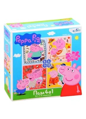 Набор пазлов 4в1 «Семья вместе» — это комплект пазлов с разной элементностью, включающий в себя головоломки для самых маленьких от 4 до 12 элементов, объединенных общей тематикой. Это необычная коллекция картинок с изображением героев мультфильма Свинка Пеппа, которая понравится любому ребенку. Соберите всю коллекцию и окунитесь в новое приключение! Постепенно усложняя сборку пазла от 4 элементов до 12 элементов, ребенок научится внимательности, концентрации, а также сможет развить мелкую моторику.