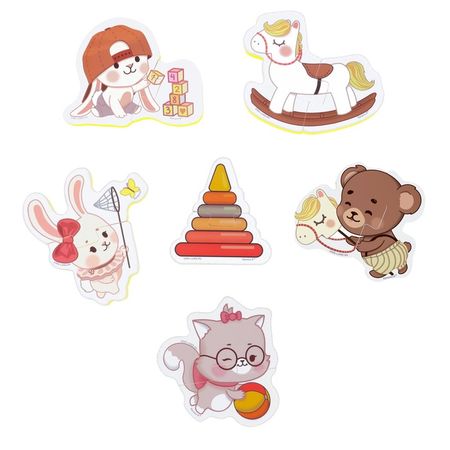 Превратите купание в увлекательное обучение! Набор мягких пазлов «Малыши и их игрушки» — это яркий и безопасный способ развития логики, моторики и воображения. Пазлы из мягкого материала EVA не скользят и легко прилипают к поверхности.ОсобенностиЗабавные игрушки из мягкого материала не тонут в воде и при намокании приклеиваются к кафелю или ванне.Изделия выполнены в виде пазлов, которые нужно соединять друг с другом, чтобы собрать единую картинку.Материал EVA безопасен, мягкий и водостойкий. Набор подходит для малышей от 1 года.Стикеры подходят для мальчиков и девочек.Обучение через игруНабор помогает ребёнку развивать важные навыки. Во время игры малыш тренирует логическое мышление и улучшает координацию рук.Подарите малышу возможность учиться и играть одновременно. Набор мягких пазлов «Малыши и их игрушки» станет отличным выбором для родителей, которые хотят совместить полезное с приятным!