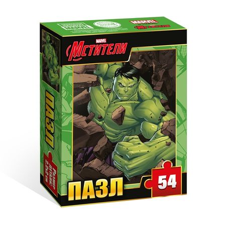 Пазлы «Развушительный Халк» — это яркая и увлекательная игра для маленьких поклонников Мстителей. Составленные из 54 элементов, они переносят ребёнка в волшебный мир, где каждый фрагмент пазла — часть удивительной супергеройской истории.ОсобенностиКартинка с любимым персонажем привлекают внимание и вдохновляют на сборку.Прямоугольная форма собранного пазла удобна для игры за столом или на полу.Картон высокого качества делает детали прочными и безопасными.Подходит для детей от 3 лет, развивая мелкую моторику и логическое мышление.Идеальный выбор для мальчиков, которые любят истории о супергероях и головоломки.Играем с пользойСобирая пазл, ребёнок учится находить связь между фрагментами и целым, тренируя внимание и терпение. Яркие цвета и знакомые персонажи надолго удерживают интерес малыша, а также способствуют развитию зрительного восприятия и воображения. Расскажите ребёнку о приключениях Халка, чтобы сделать игру ещё увлекательнее.Как сохранить собранный пазлНанесите клей для пазлов на лицевую сторону получившейся картинки, равномерно распределите его по поверхности.Клей высыхает в течение 1,5−2 часов. После высыхания клей абсолютно прозрачен и не оставляет разводов.Вставьте получившуюся картинку в раму и украсьте интерьер.