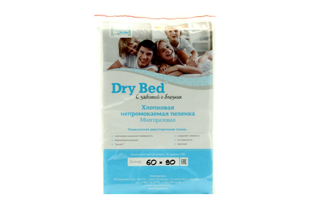 Пеленка Dry bed махровая непромокаемая дышащая мембрана 60х90 см белый