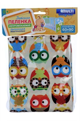Пеленка Молти Даяпес непромок д/кроватки из микрофибры с рисунком совы 60х90 см