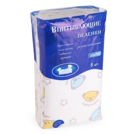 Пеленки впитывающие гигиенические одноразовые детские Мишки Наша мама 60х90см 5шт