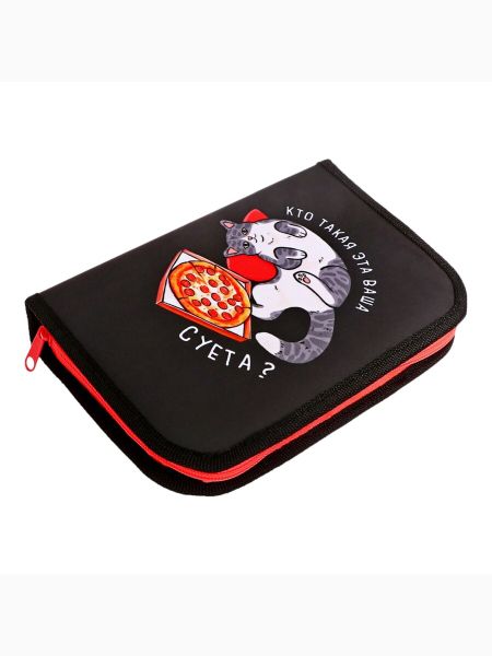Пенал 1 секция 140×210×40 мм, откидной карман и косметичка, тканевый, «Кот суета». <em> Организуй пространство с удовольствием!</em> <strong> Каркасный текстильный пенал с котом и суетой</strong> это идеальное решение для хранения школьных принадлежностей и аксессуаров в одном месте. Стильный черно-красный дизайн привлечет внимание и подчеркнет индивидуальность владельца. <ul> <li> <strong> Практичность и удобство:</strong> Один главный отсек с внутренними карманами позволяет с легкостью разместить необходимые вещи. Удобный откидной карман хорошо подходит для хранения мелочей.</li> <li> <strong> Качественные материалы:</strong> Изготовленный из прочного текстиля, этот пенал гарантирует долгий срок службы и защиту содержимого от повреждений.</li> <li> <strong> Индивидуальный стиль:</strong> Яркий рисунок с котом «Суета» делает этот пенал уникальным аксессуаром, который будет радовать вас каждый день.</li> <li> <strong> Универсальность использования:</strong> Подходит не только для школьников, но и для офисных сотрудников, студентов или творческих специализаций. Компактные размеры позволяют постоянно носить его с собой в сумке или рюкзаке.</li> </ul> <strong> Современный и стильный аксессуар:</strong> Этот пенал соединяет в себе функциональность и оригинальный дизайн. Он станет верным помощником в организации пространства, поддержании порядка и проявлении вашего неповторимого стиля. Подарите себе или своему близкому полезный и модный аксессуар!