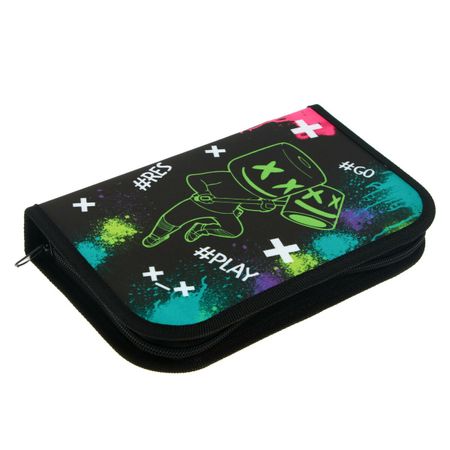 Главная » Товары для детей Пенал Просмотров 5 Пенал «Маска» 1 секция, 130×210×40 мм, 2 откидные планки, тканевый. Calligrata