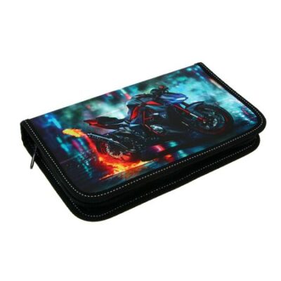 Пенал «Мото», 1 секция, 115×205×30 мм, ламинированный картон. Пенал для школьных канцелярских принадлежностей с 1-м отделением. Увеличенный размер 115*205*30 мм (помещается карандаш с резинкой). Идеальное решение для первоклассника. Удобная молниия с металлическим бегунком, прочные резинки для предметов. Внутри пенала — цветная печать. Вмещает до 18 предметов. Материал снаружи — ламинированный картон с цветной печатью. Конструкция отличается износостойкостью и прочностью, поможет защитить канцелярские принадлежности от повреждений. Внутри пенала прочно пришиты резинки. Внутренняя часть пенала выполнена из картона с ламинацией. Поставляется без наполнения.