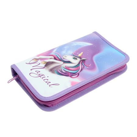 Пенал «Магическая единорожка», 1 секция, 115×205×30 мм, ламинированный картон. Пенал для школьных канцелярских принадлежностей с 1-м отделением. Увеличенный размер 115*205*30 мм (помещается карандаш с резинкой). Идеальное решение для первоклассника. Удобная молниия с металлическим бегунком, прочные резинки для предметов. Внутри пенала — цветная печать. Вмещает до 18 предметов. Материал снаружи — ламинированный картон с цветной печатью. Конструкция отличается износостойкостью и прочностью, поможет защитить канцелярские принадлежности от повреждений. Внутри пенала прочно пришиты резинки. Внутренняя часть пенала выполнена из картона с ламинацией. Поставляется без наполнения.
