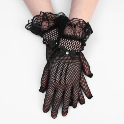 Перчатки женские, черные, короткие. Карнавальные перчатки черного цвета в сеточку станут ярким акцентом вашего образа. Стильные и элегантные, они отлично дополнят любой наряд для карнавалов, тематических вечеринок, костюмированных балов, театральных постановок и других праздничных мероприятий. Носите перчатки с платьем или костюмом, чтобы добавить нотку изысканности и завершенности в свой образ. Они также могут служить отличным аксессуаром для фотосессий и выступлений на сцене. <b> Особенности</b> <ul> <li> Размер перчаток — M, они подойдут взрослым и подросткам.</li> <li> Перчатки сделаны из полиэстера. Они мягкие на ощупь, приятные и комфортные.</li> <li> Карнавальные перчатки станут отличным подарком для любителя фотосессий!</li> </ul>