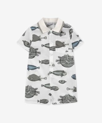 Легкий полукомбинезон-песочник из высококачественного хлопка с ярким занимательным рисунком в морской тематике точно понравится юным искателям приключений. Удобная конструкция с застежкой на кнопках, приятный по тактильным ощущениям текстиль, фурнитура высочайшего качества гарантируют мягкость, уют, комфорт и безопасность мальчика. Особенность модели — мягкий рибовый воротник с контрастным кантом,