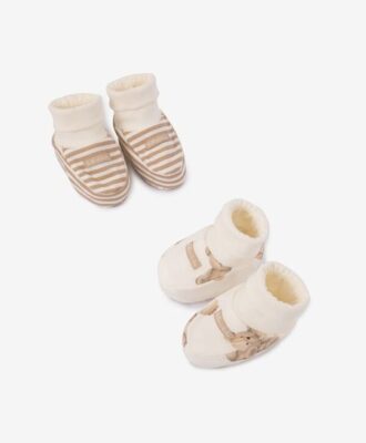 Бежевая полоска или мишки?Трикотажные пинетки — важный элемент детского гардероба в первые месяцы жизни! Выполненные из мягкого хлопка, на тонком утеплителе, они идеально подойдут для прогулки, согреют ребёнка, создадут уют и максимальный комфорт. В оформлении пинеток использована фирменная нашивка. В комплекте 2 пары.