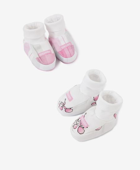 Трикотажные пинетки в приятных девчачьих оттенках и принтах — важный элемент детского гардероба в первые месяцы жизни! Выполненные из мягкого хлопка, на тонком утеплителе, они идеально подойдут для прогулки, согреют ребёнка, создадут уют и максимальный комфорт. В оформлении пинеток использована фирменная нашивка. В комплекте 2 пары.