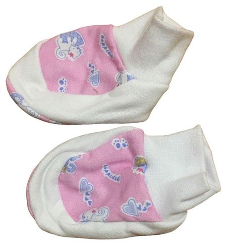 Пинетки — это предмет первой и необходимой одежды для малыша. Изготовлены рукавички из 100% хлопка, средней плотности, очень мягкого и приятного к телу малыша. Товар представлен в ассортименте, без возможности выбора.