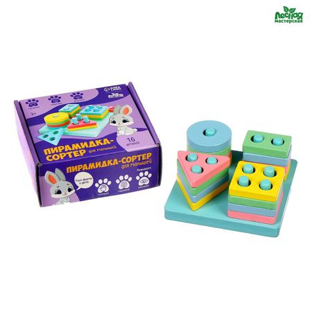 Пирамидка — сортер, 16 деталей. Пирамидка-сортер — это развивающая игрушка, которая поможет занять малыша и потренировать важные навыки. <b> Особенности игрушки</b> <ul> <li> Пирамидка представляет собой основание со штырьками и набор геометрических фигур.</li> <li> Задача малыша — правильно подобрать деталь по количеству отверстий и надеть ее на столбики.</li> <li> Игрушка выполнена из дерева, поэтому она будет радовать вас и малыша долгое время.</li> </ul> <b> Чем полезны игры с пирамидкой-сортером</b> Выполняя задания, ребенок тренирует мелкую моторику рук, координацию движений, пространственное мышление и навыки сортировки предметов по общему признаку.