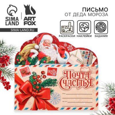 Письмо Деду Морозу, с наклейками, раскраски 3 листа «Новый год: Почта Счастья». Набор с письмом Деду Морозу — это отличный подарок для ребенка, который позволит ему окунуться в атмосферу новогодних чудес. В наборе есть три листа с раскрасками и яркими наклейками. Оформление комплекта выполнено в новогодней тематике. Ребенок сможет написать письмо Деду Морозу, раскрасить картинки и украсить их наклейками. <ul> <li> Размер письма в развернутом виде: 33.4 см х 16 см.</li> </ul>