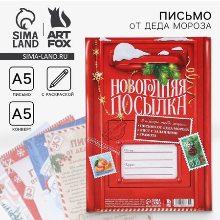Письмо от деда мороза «Новогодняя посылка!». Письмо от деда мороза станет прекрасным подарком на праздник. <ul> <li> Отделка: без отделки;</li> <li> Формат письма: А5;</li> <li> Фасовка: по 1 шт.</li> <li> Индивидуальная упаковка: пленка.</li> </ul> Состав: бумага.