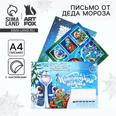 Письмо от Деда Мороза, конверт А5, с наклейками «Новогодняя почта. Волшебного праздника». <b> Для заветных желаний</b> Как Дед Мороз узнает о том, какой подарок вы мечтаете получить? Конечно, с помощью новогоднего письма! Его яркий оригинальный дизайн привлечет внимание получателя и он, непременно, исполнит ваше желание в первую очередь! Настоящий ответ от Деда Мороза можно получить только в случае, если послание будет отправлено по всем требованиям волшебной почты (в конверте и с почтовыми марками) по адресам: <ol> <li> В России: 162340, Россия, Вологодская область, г. Великий Устюг, Деду Морозу (на русском языке).</li> <li> В Финляндии: Santa Claus, Joulupukin kamman, 96930 Napapuri, Rovaniemi, Finland (желательно на английском).</li> </ol> Письмо нужно отправлять заранее (в начале декабря), ведь у дедушки и его преданных помощников так много работы, что они могут просто не успеть ответить всем ребятишкам вовремя. Формат <b> конверта</b> — А5. Формат <b> письма</b> — А4.