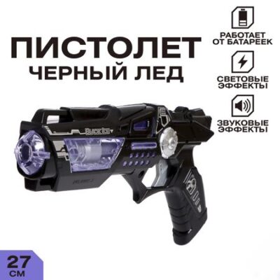 Пистолет «Черный лед», световые и звуковые эффекты. <strong> Оружие настоящих супергероев </strong> С пистолетом «Черный лед» малыш почувствует себя храбрым космическим воином, способным выиграть в любой схватке. Яркие звуковые и световые эффекты с первых секунд привлекут внимание мальчика, ему сразу же захочется опробовать новое оружие. Бластер работает от 3 батареек типа АА, элементы питания в комплект не входят. Товар предназначен для детей старше 3 лет.