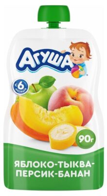 Пюре Агуша фруктово-овощное яблоко тыква персик банан с 6 мес., 90 г