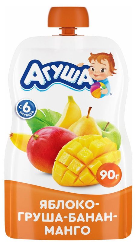 Пюре Агуша яблоко груша банан манго с 6 мес., 90 г