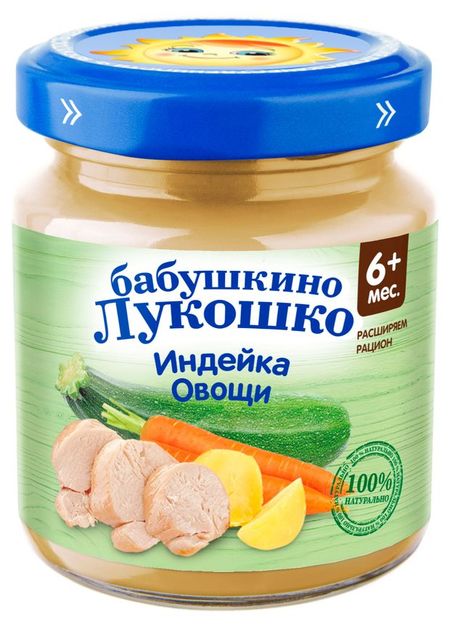 Пюре Бабушкино Лукошко Индейка с овощами с 6 мес., 100 г