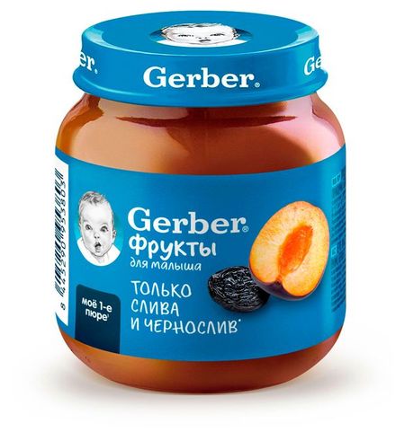 Gerber (Гербер). Продукт детского питания для детей раннего возраста, продукт прикорма, фруктовое пюре "Слива и Чернослив".