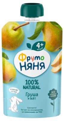 Фруктовое пюре ФрутоНяня из груш в мягкой упаковке это вкусный и полезный перекус, который удобно брать с собой, а яркая мягкая упаковка привлечет внимание вашего малыша и позволит ему есть самостоятельно. Отборные груши обеспечат организм вашего малыша природной пользой и энергией для гармоничного роста!