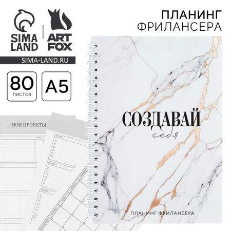 Планер фрилансера «Создавай себя» мрамор А5, 80 л.. Планинг фрилансера, поможет держать в голове десятки срочных задач, контролировать сразу несколько проектов и вести переговоры с потенциальными клиентами. Это эффективный помощник в планировании, чтобы все успевать и быть в ресурсе. Внутри для тебя: — Цели и задачи; — Текущие проекты; — Доходы и расходы; — Итоги месяца. Записывай и анализируй!