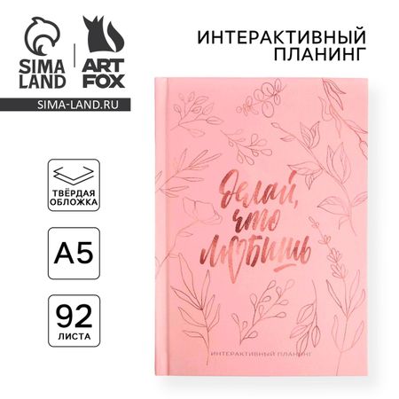 Планер интерактивный А5, 92 листа «Делай, что любишь». Интерактивный планинг поможет поменять твою жизнь к лучшему и станет незаменимым помощником. Каждая страница направлена на проработку качества жизни, планинг подскажет тебе с чего начать, чтобы добиться желаемых результатов как можно скорее. Внутри для тебя: Колесо баланса — простой, но мощный инструмент, который поможет проработать все области твоей жизни Чек-листы, трекеры, челленджи позволяют развивать в себе полезные привычки для повышения личной эффективности. Контроль доходов и расходов. Аффирмации- установки, стимулирующие положительные перемены в жизни. Не жди! Начинай делать свою жизнь лучше с нами прямо сейчас!