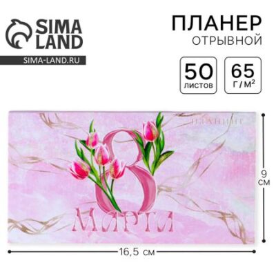 Планер мини с отрывными листами «Тюльпаны. 8 марта», А6, 50 листов. Планер с отрывными листами станет прекрасным подарком на праздник. • Мечтай; • Записывай; • Выполняй. <ul> <li> Форма: прямоугольник ;</li> <li> Количество листов: 50 ;</li> <li> Тип скрепления: на отрывной склейке ;</li> <li> Состав: бумага, картон.</li> </ul>