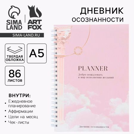 Планер осознанности Planner, в твердой обложке с тиснением А5, 86 л. Этот дневник для тех, кто хочет, чтобы в его жизни было больше осознанности, для тех, кому надоело жить на «автопилоте» и кто хочет понять себя чуть лучше. Он изменит ваше отношение к жизни и придаст сил, чтобы двигаться дальше. В этом дневнике вы найдете: — списки желаний; — карты визуализаций; — колесо баланса: — различные трекеры; — чек-листы; — планирование по дням; — цели на месяц; — подведение итогов.