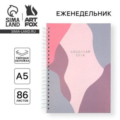 Планер-Планер-еженедельник А5, 86 л. В твердой обложке, на гребне «Создавай себя». <b> Этот еженедельник поможет тебе в организации планов. Он состоит из 12 разворотов на каждый месяц и 5 разворотов на неделю.</b> Внутри: <b> • Планирование на неделю</b> <b> • Матрица Эйзенхауэра</b> Самый популярный метод тайм- менеджмента: делай важное и не трать время на ненужное! Ставь задачи по выбранному приоритету и отмечай факт выполнения. <b> • Трекер привычек</b> график, помогающий отказаться от вредных привычек и привить полезное. <b> • Итоги года</b> Записывай все свои достижения и события.