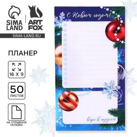Планер с отрывными листами «С Новым годом», 100×180 мм, 50 листов, недатированный. Планер недатированный станет прекрасным подарком на праздник. • Мечтай; • Записывай; • Выполняй. <ul> <li> Размер, см:10 х 18 ;</li> <li> Форма: прямоугольник ;</li> <li> Количество листов: 50 ;</li> <li> Линовка блока: линейка;</li> <li> Тип скрепления: на отрывной склейке ;</li> <li> Упаковка: пакет.</li> </ul> Состав: бумага.